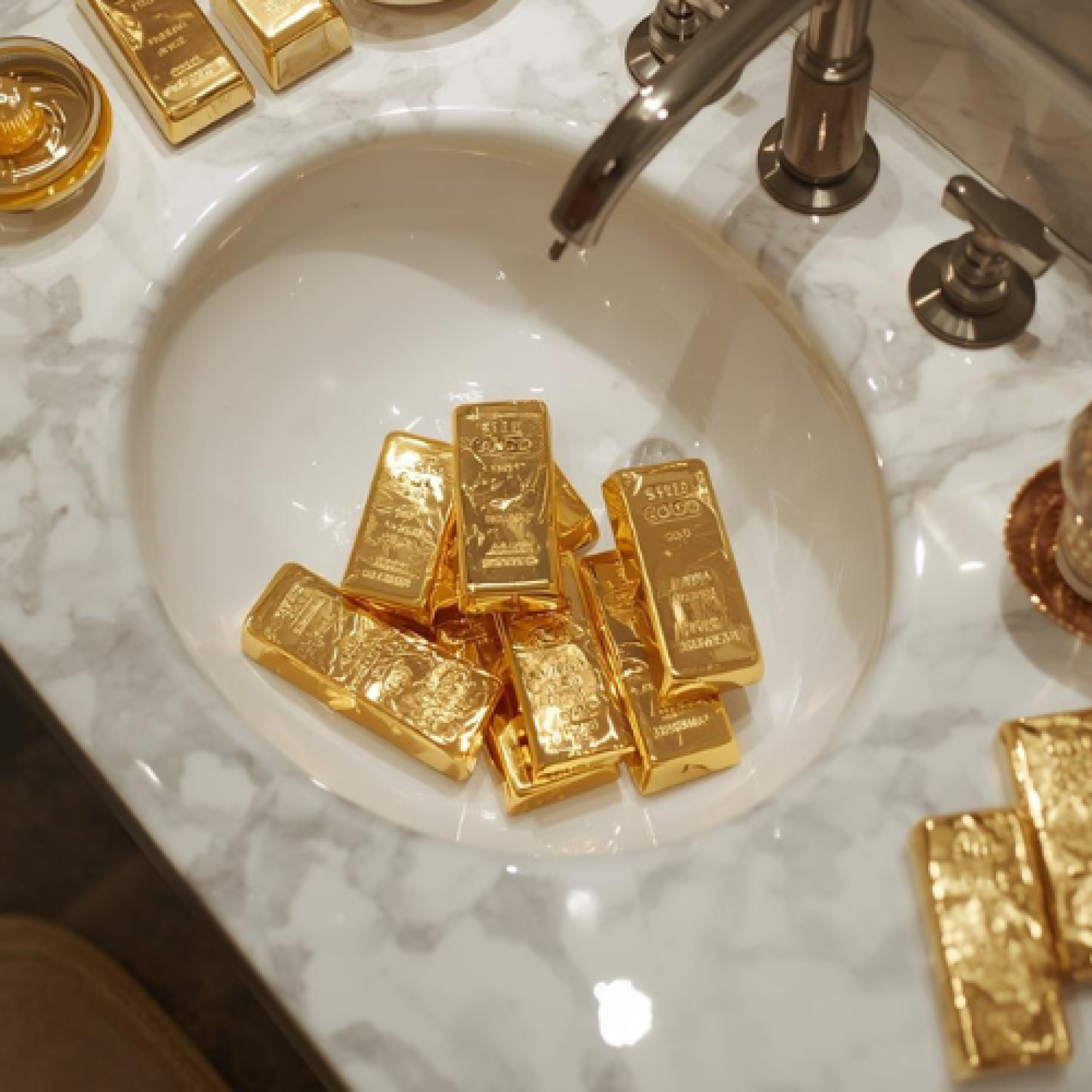 สารเคมีในสบู่ แชมพู ครีมอาบน้ำ รวมถึงคราบหินปูนในน้ำ สามารถเกาะสะสมบนผิวทองได้ เมื่อสะสมไปนาน ๆ ทองจะดูไม่เงางามเหมือนเดิม แม้จะเป็นทองแท้ก็ตาม โดยเฉพาะเครื่องประดับที่มีซอกหรือข้อต่อ เช่น สร้อยหรือกำไล